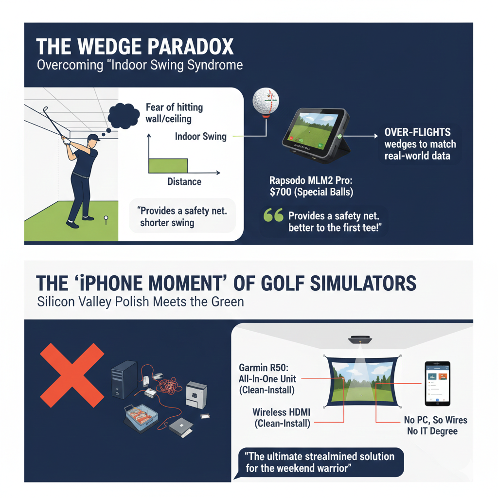 While a purist might call this an inaccuracy, it is actually a psychological safety net. Most 5-15 handicaps suffer from “indoor swing syndrome”—a subconscious tendency to swing shorter out of fear of hitting a wall or ceiling. Furthermore, on a real course, grass is longer and spin is lower, meaning the ball naturally travels further than it does off a perfect simulator turf lie. By “over-flighting” the wedge, the MLM2 Pro provides a data profile that actually correlates better to your real-world transition from the basement golf simulator to the first tee.
